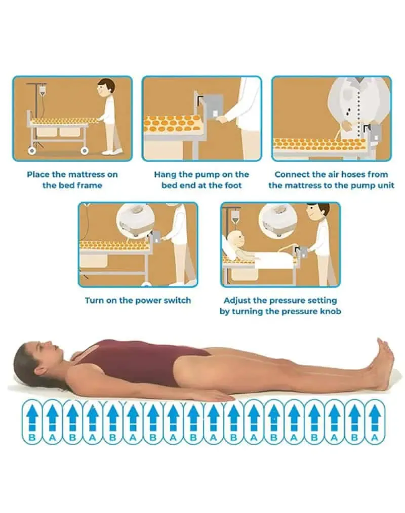 - RELIEVE BED SORES AND ULCERS: Our alternating pressure pad can relieved bed sores and ulcers caused by prolonged bed rest, and it can also promote blood circulation and help control skin maceration. This air mattress for hospital bed is very suitable for patients with long-term bed rest. If you have a loved one suffering, this is the answer to all your prayers