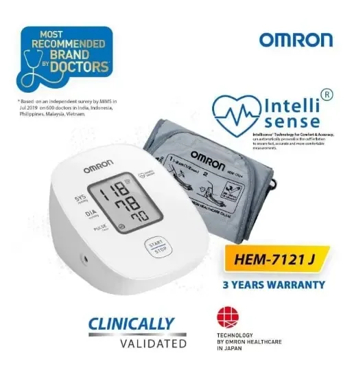 - Omron HEM 7121J comes with 3 years warranty and lifetime support provided by Omron. This digital blood pressure monitor is guaranteed to meet your standards; This product is mainly designed for general household use. Please read the important safety information in the instruction manual before using the unit