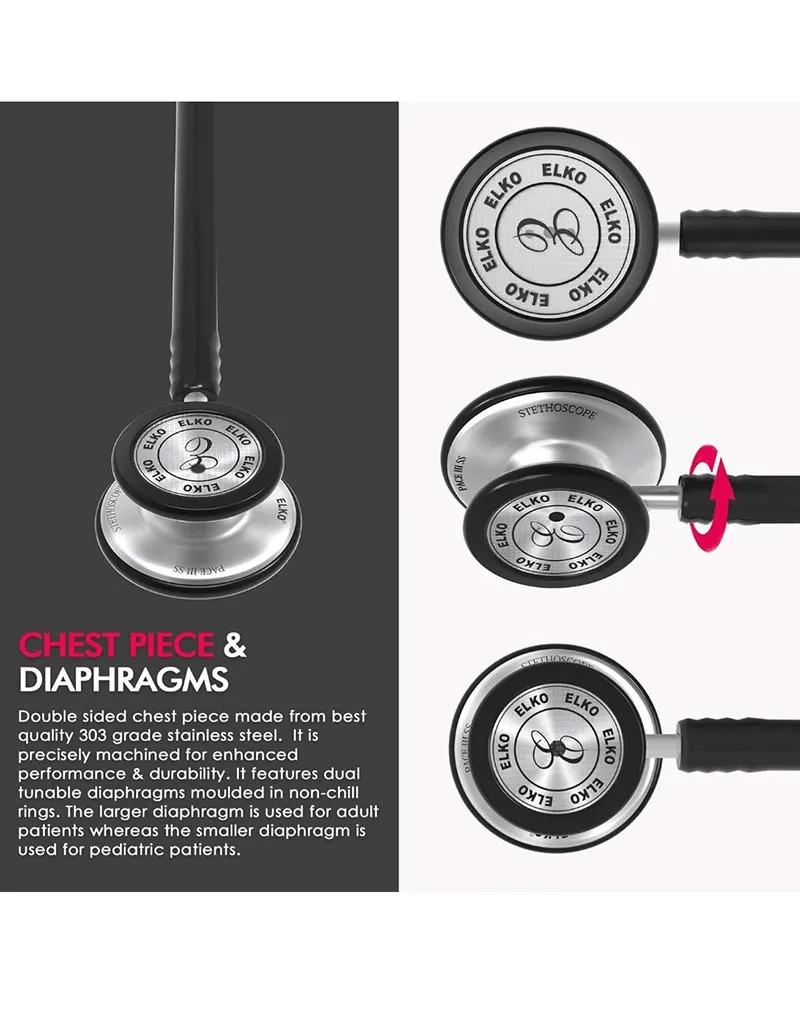 The ELKO Pace III SS Stethoscope is engineered to deliver superior performance, comfort, and reliability for medical professionals, from students to seasoned practitioners.