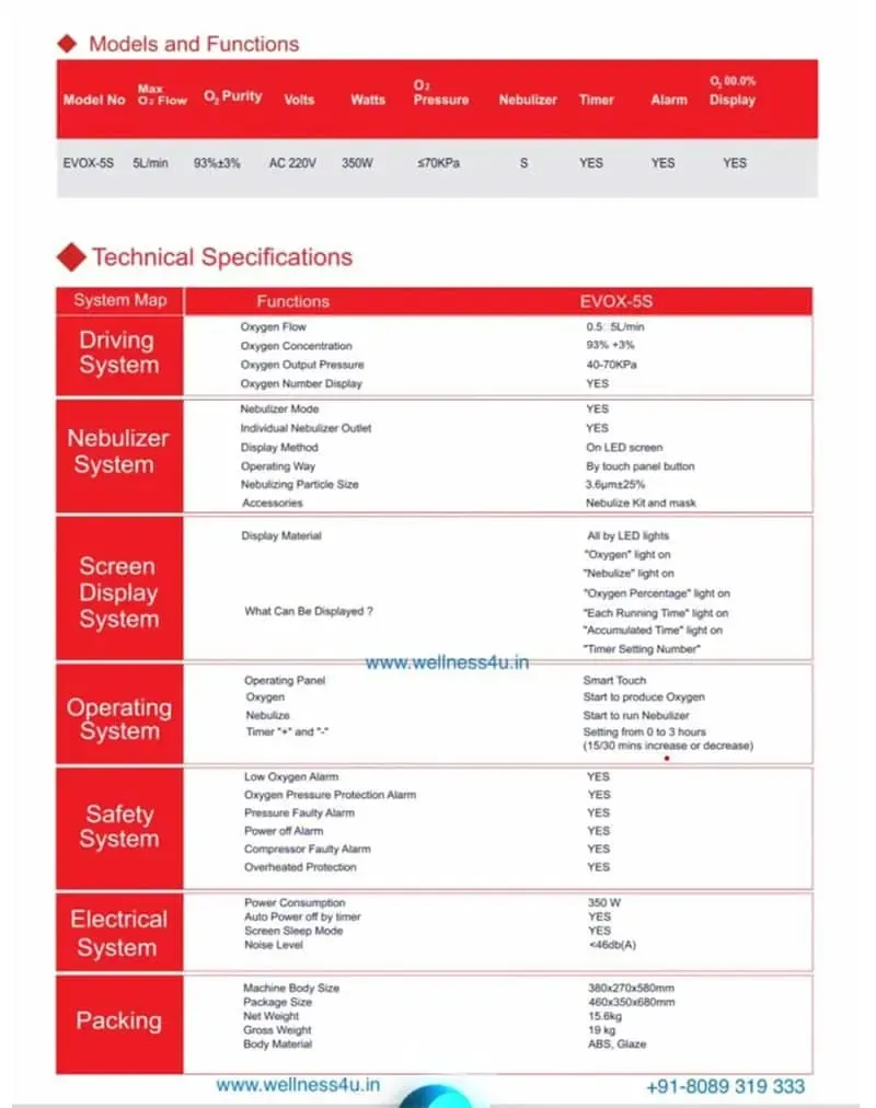 - Weight and Size: The weight of Evox 5 LPM is 15.6 kgs.